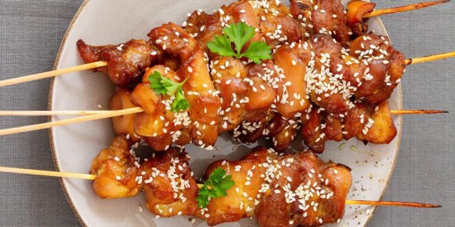 3) 2 min avant la fin de cuisson enrober vos brochettes du mélanger miel sauce beurre … et mettre à nouveau à cuire quelques minutes .