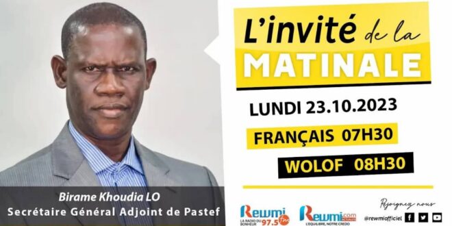 Votre émission Invité de la Matinale Reçoit Birame Khoudia LO, Secrétaire Général Adjoint de Pastef, Ce Lundi 23 Octobre 2023. Présentation: Fatou Thiam Ngom [édition Wolof] https://youtu.be/xIYfp4hdRLM