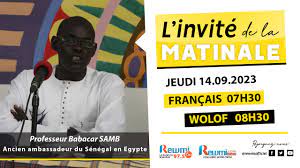 Invite de la Matinale ! Avec Professeur Babacar SAMB 14 Septembre 2023 Wlf 14 septembre 2023 L'invité de la rédaction Partager Facebook Twitter LinkedIn Partager Facebook Twitter LinkedIn