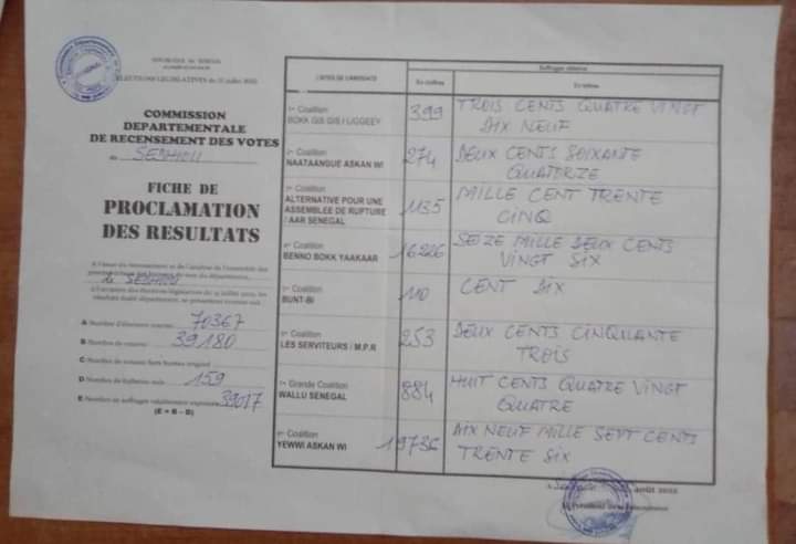 Aprés les résultats provisoires à l’issu des élections législatives, la région de Sédhiou a été remporté par la coalition Yewwi Askan a plus de 19500 voix. Des résultats contestés par le parti au pouvoir.