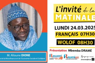 Votre émission » Invité de la Matinale » reçoit M. Alioune DIONE, Ministre de la Microfinance et de l’économie Sociale et Solidaire, Ce Lundi 24 Mars 2025. Présentation : Mbemba DRAME ( Version Wolof)