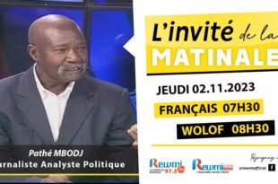 Votre émission Invité de la Matinale Reçoit Pathé Mbodj, journaliste Analyste Politique, Ce Jeudi 02 Novenbre 2023 . Présentation: Ndeye Comba Moreau [Version Wolof]